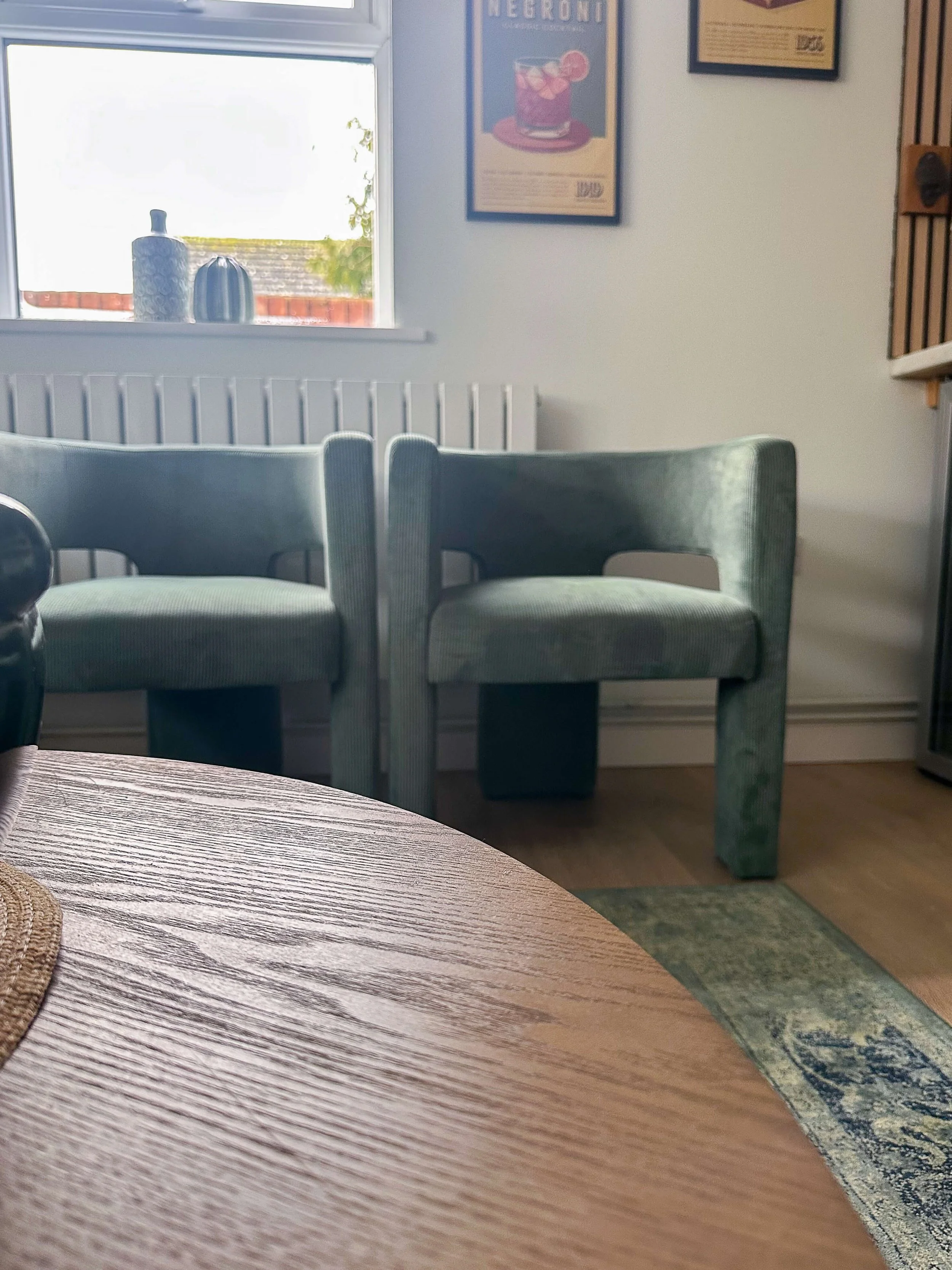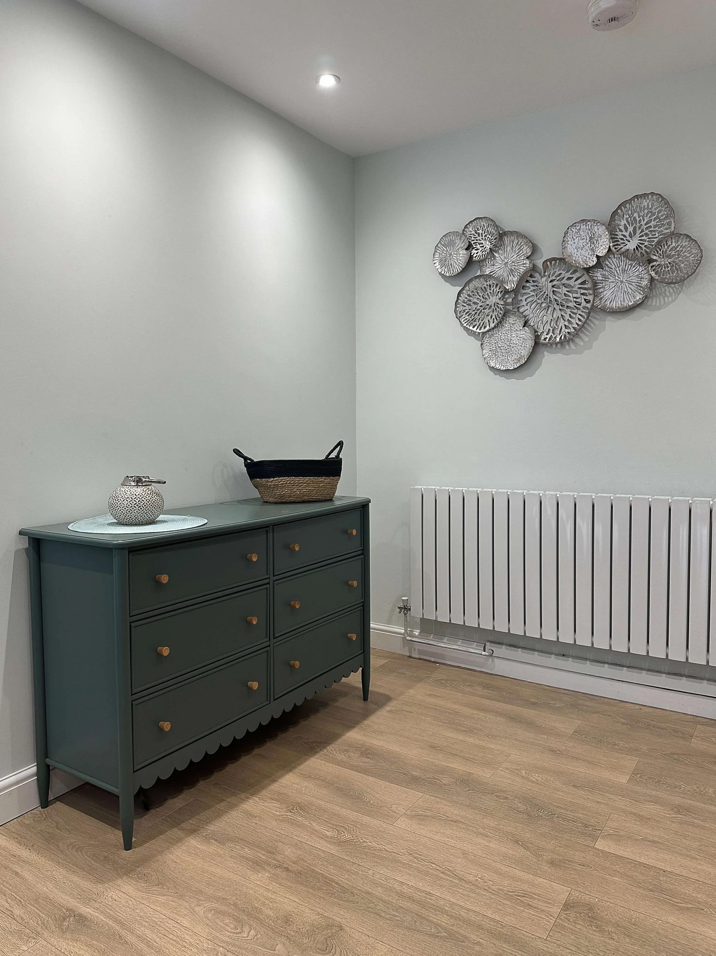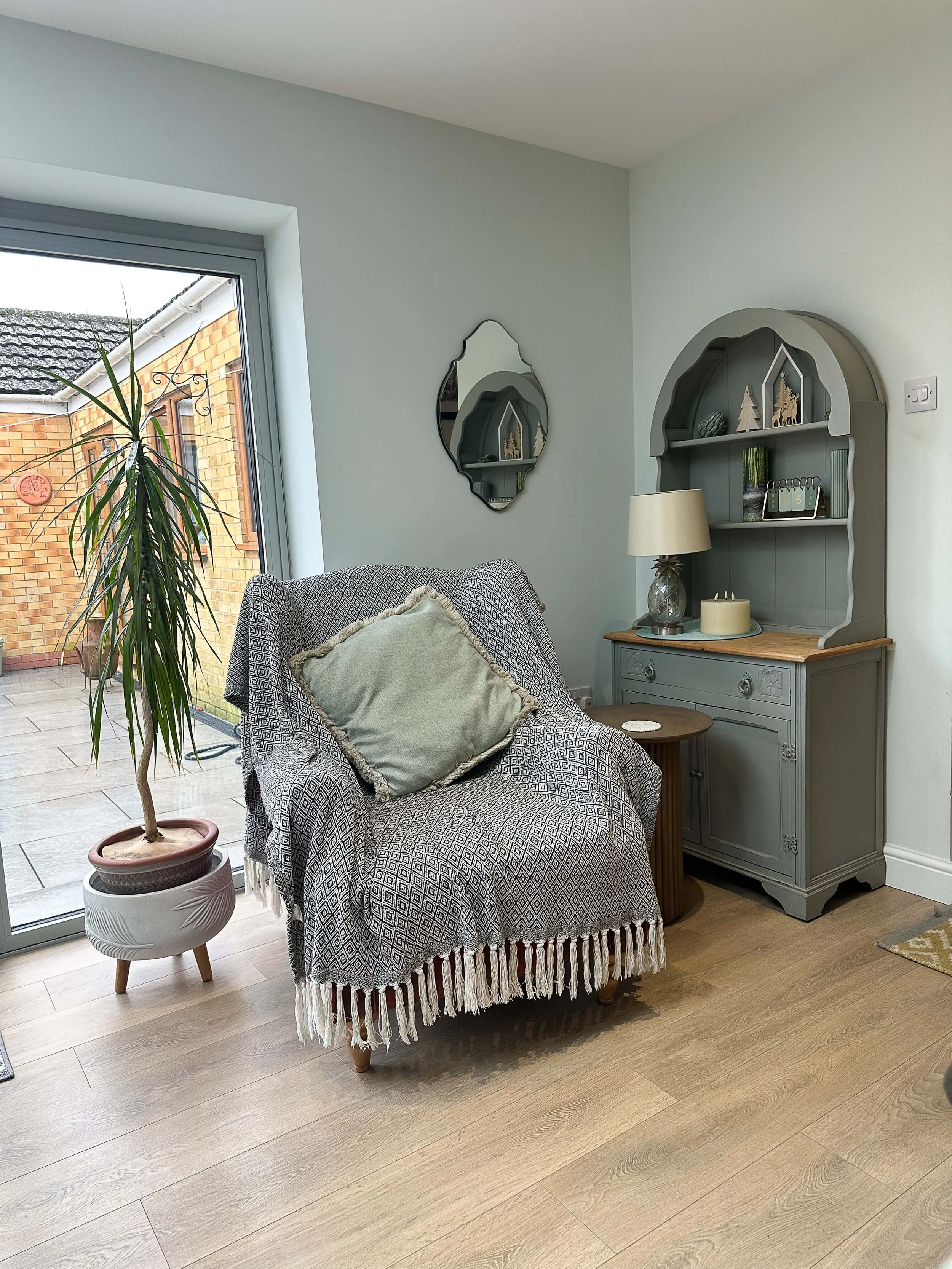 In order to minimise waste and maximise the budget, the decision was taken to retain some existing furniture pieces - some of which fit into the scheme perfectly: like the dresser in the corner. While the armchair and sofa weren’t quite as perfect. Realm prides itself on working within the client’s parameters - whether that’s a budget or time constraint, or the need to keep sentimental or long-standing pieces - so we arranged for temporary throws that fit within the scheme to ensure our clients achieved the overall look they were hoping for, while they wait to reupholster large furniture pieces.